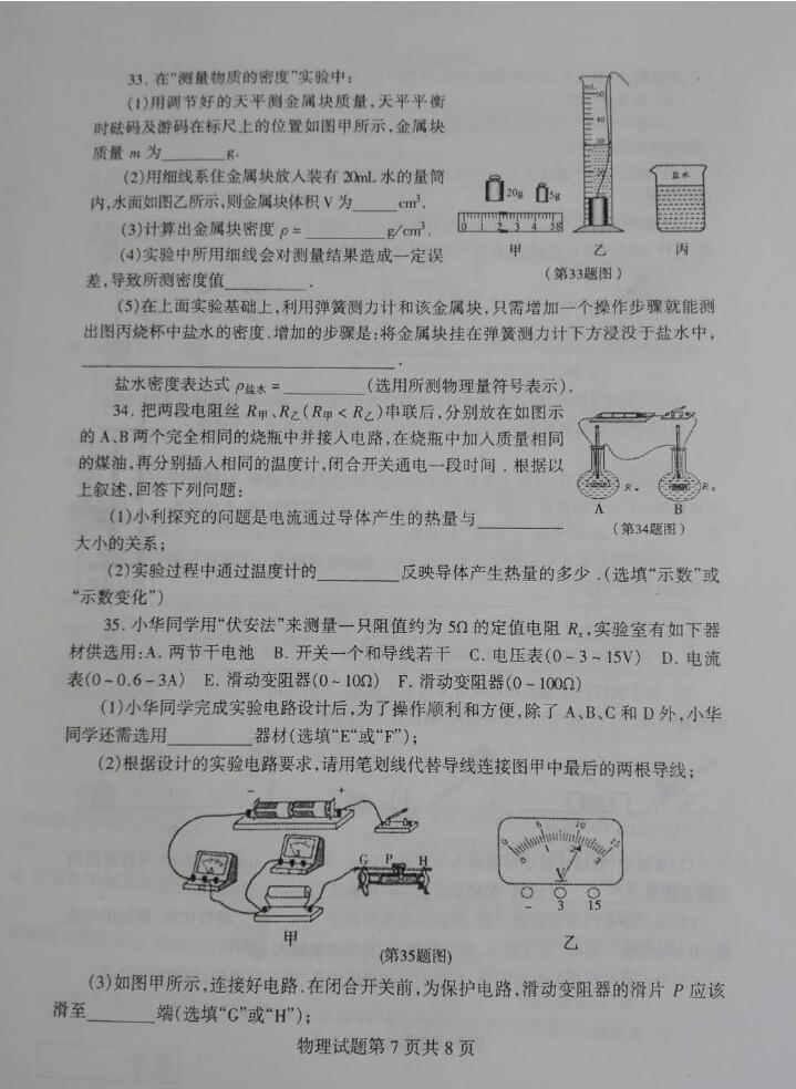 2018山东临沂费县九年级二模物理试题(图片版)(7)