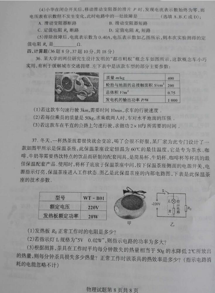 2018山东临沂费县九年级二模物理试题(图片版)(8)