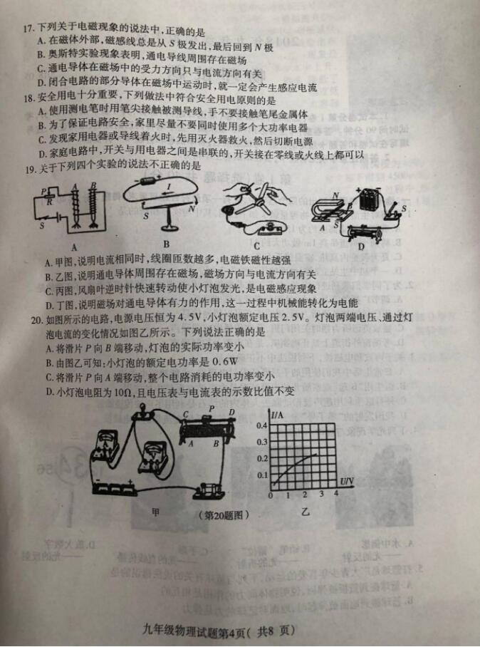 2018山东临沂兰山九年级二模物理试题(图片版)(4)