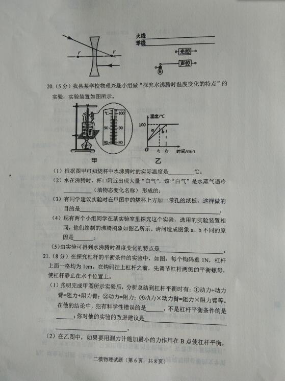 2018山东滨州无棣九年级二模物理试卷(图片版)(6)