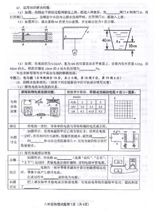 2018山东青岛青大附中九年级下二模物理试题(图片版)(5)