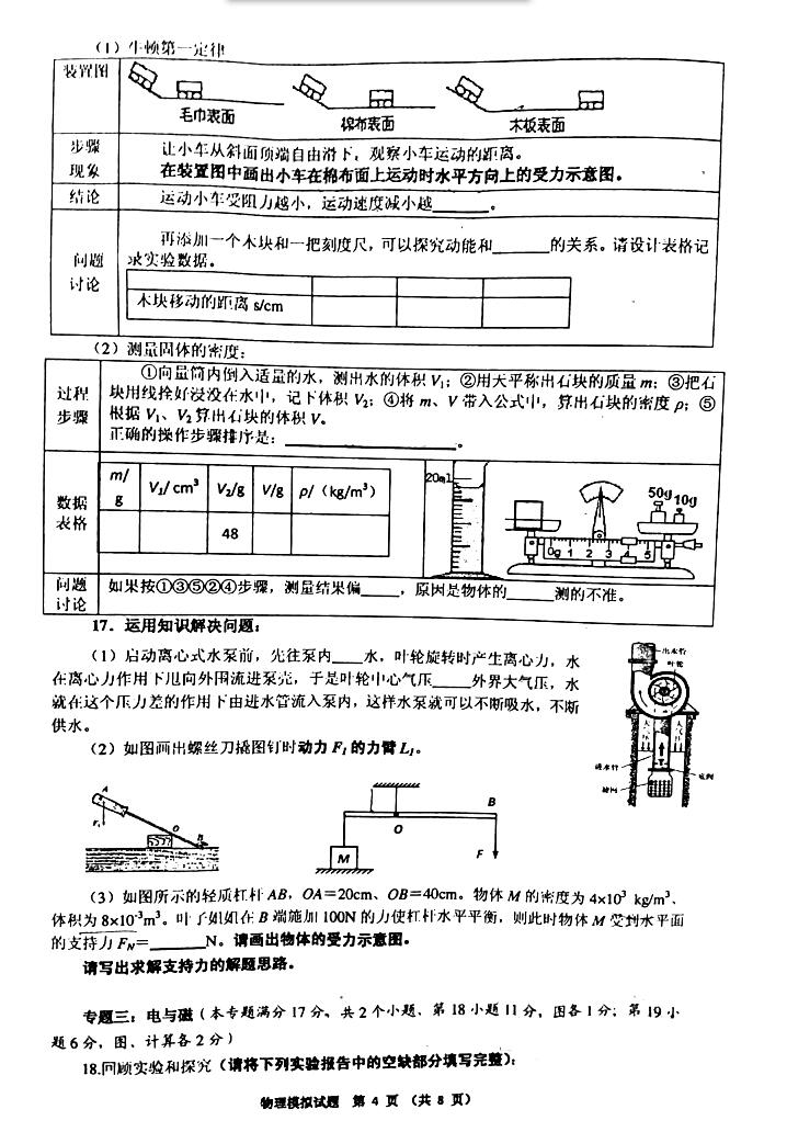 2018山东青岛市北九年级下阶段质量检测物理试题(图片版)(4)