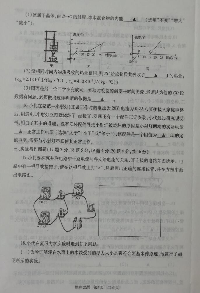 2018山东济宁鱼台九年级二模物理试题(图片版)(4)