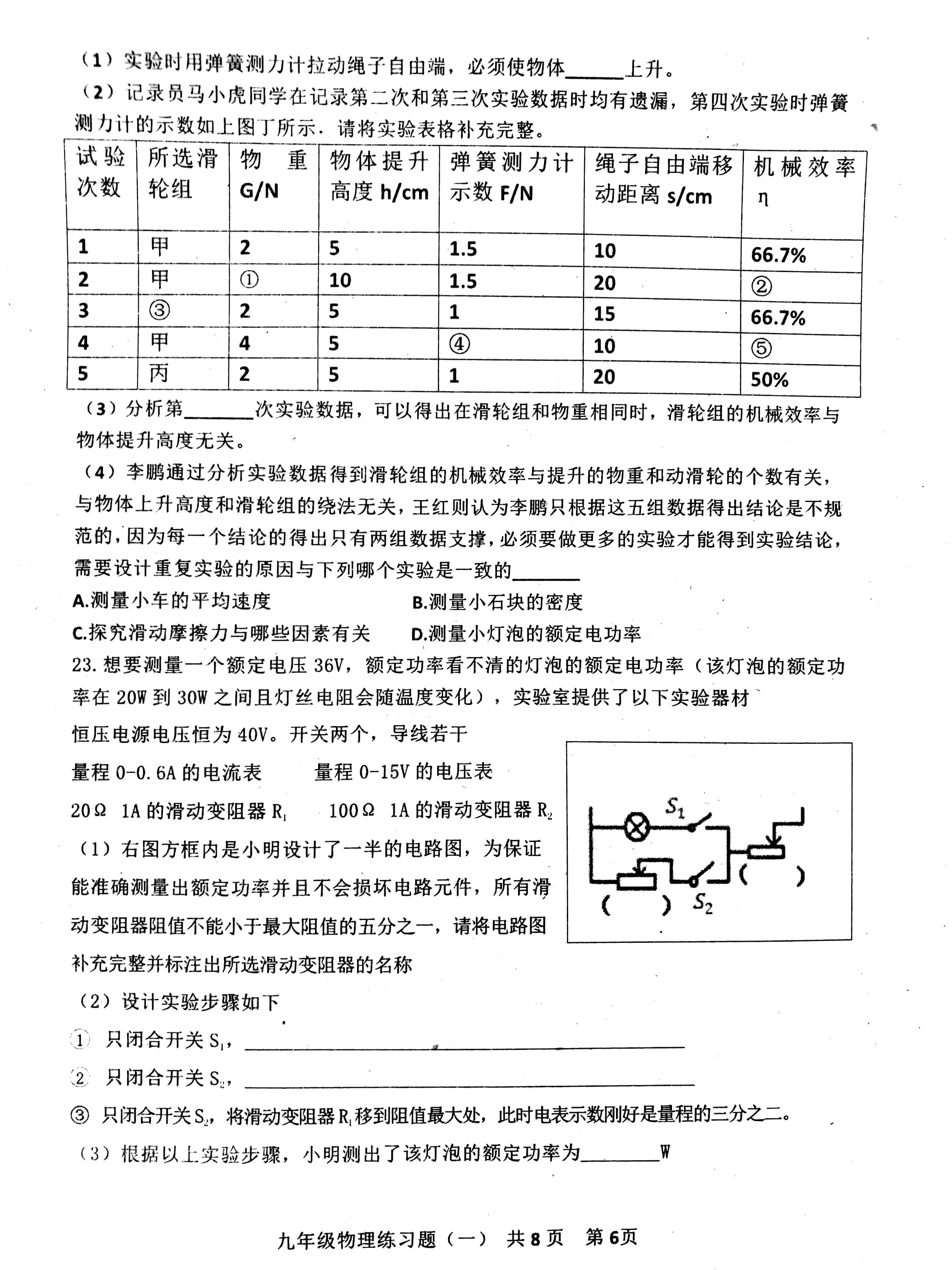 2018山东泰安岱岳九年级二模物理试题(图片版)(6)