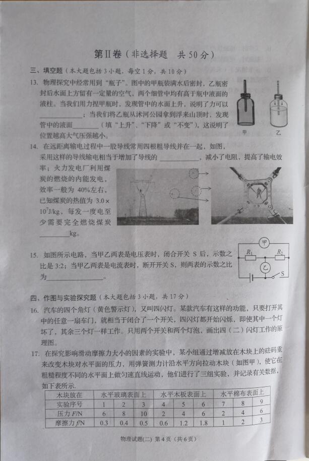 2018山东日照经济开发区中学九年级物理质检二(图片版)(3)