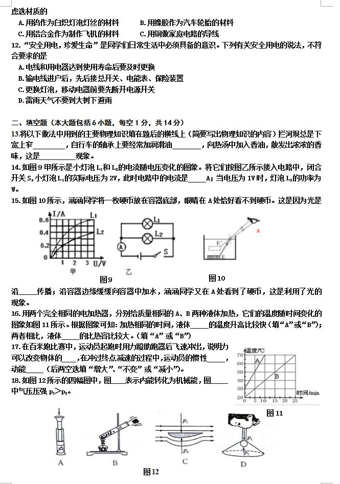 2018山东德州宁津九年级下二模物理试题(图片版)(3)