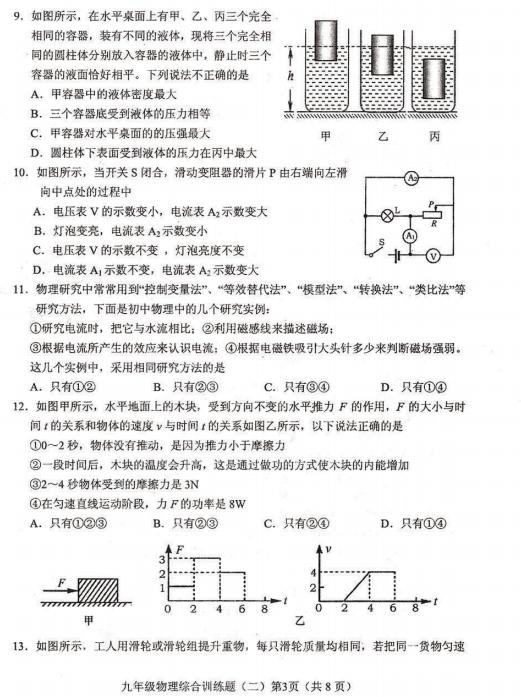 2018山东肥城中考模拟考试(二)物理试题(图片版)(3)