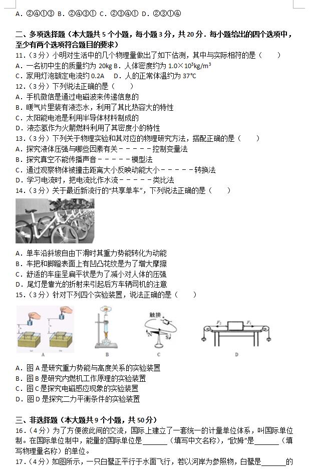 2018山东济南高新中考物理一模试卷(图片版)(3)
