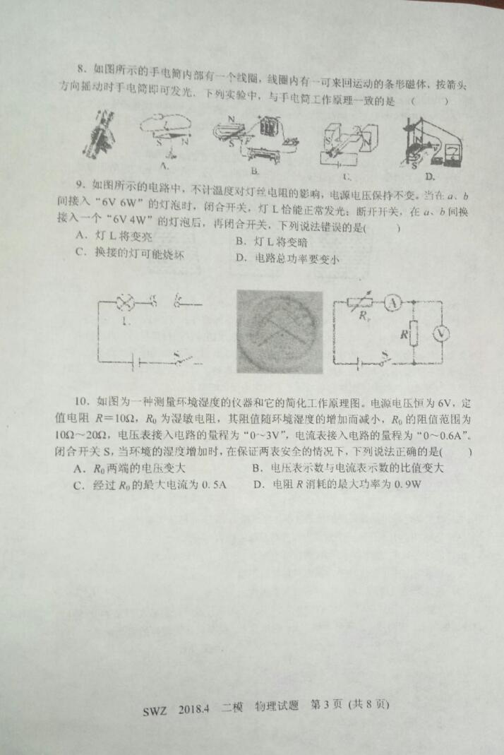 2018山东济宁中考二模物理试题(图片版)(3)