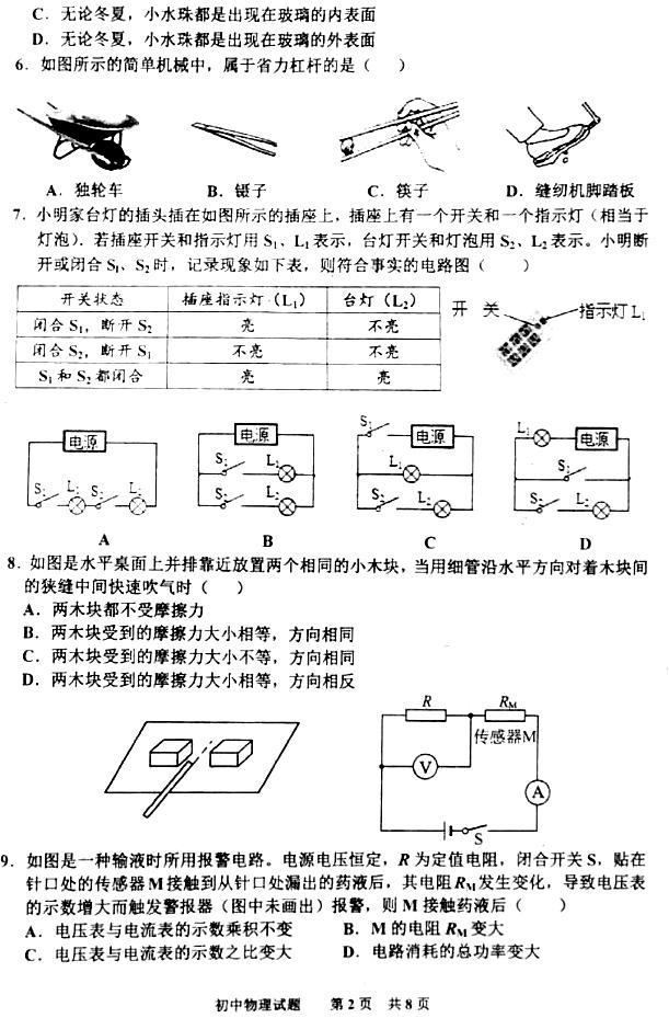 2018山东潍坊青州中考一模物理试题(图片版)(2)