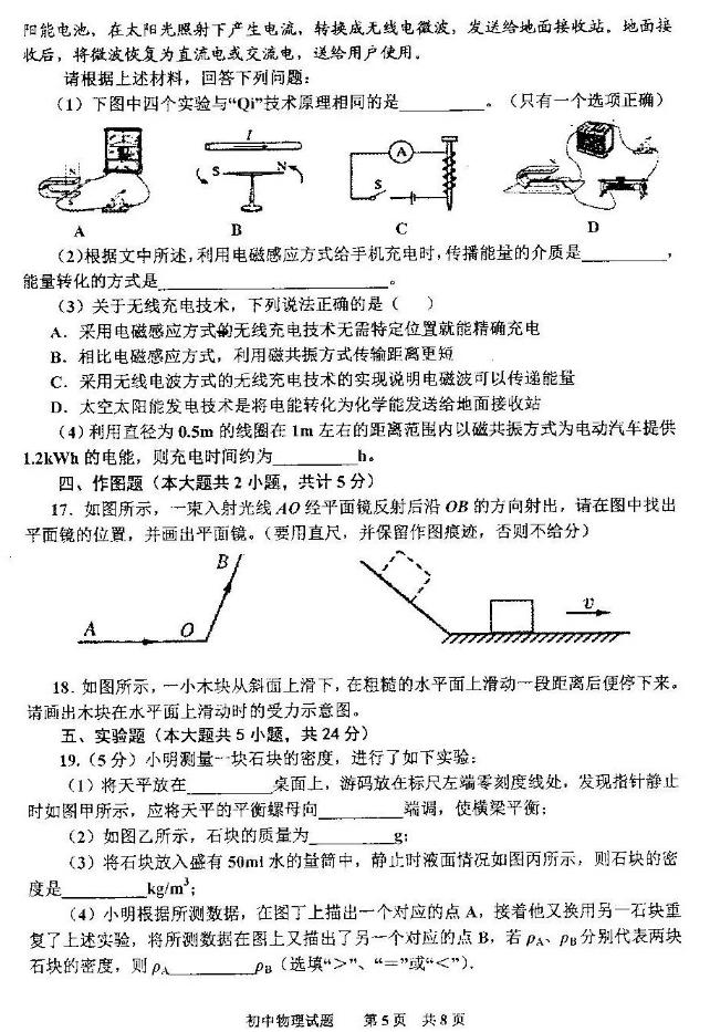 2018山东潍坊青州中考一模物理试题(图片版)(5)