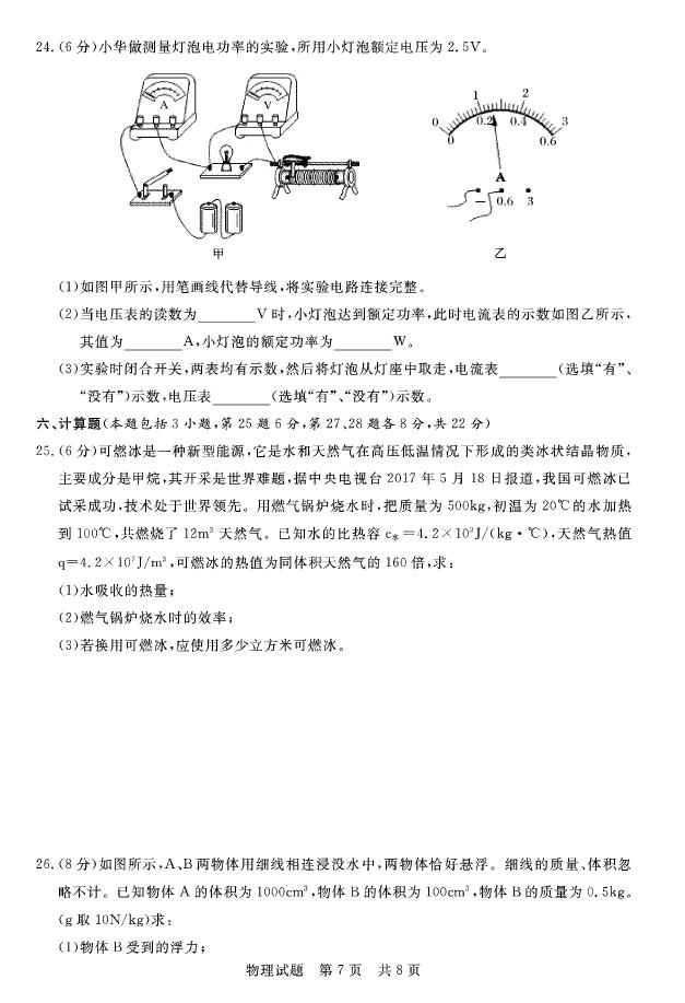 2018山东聊城九年级一模考试物理试题(图片版)(7)