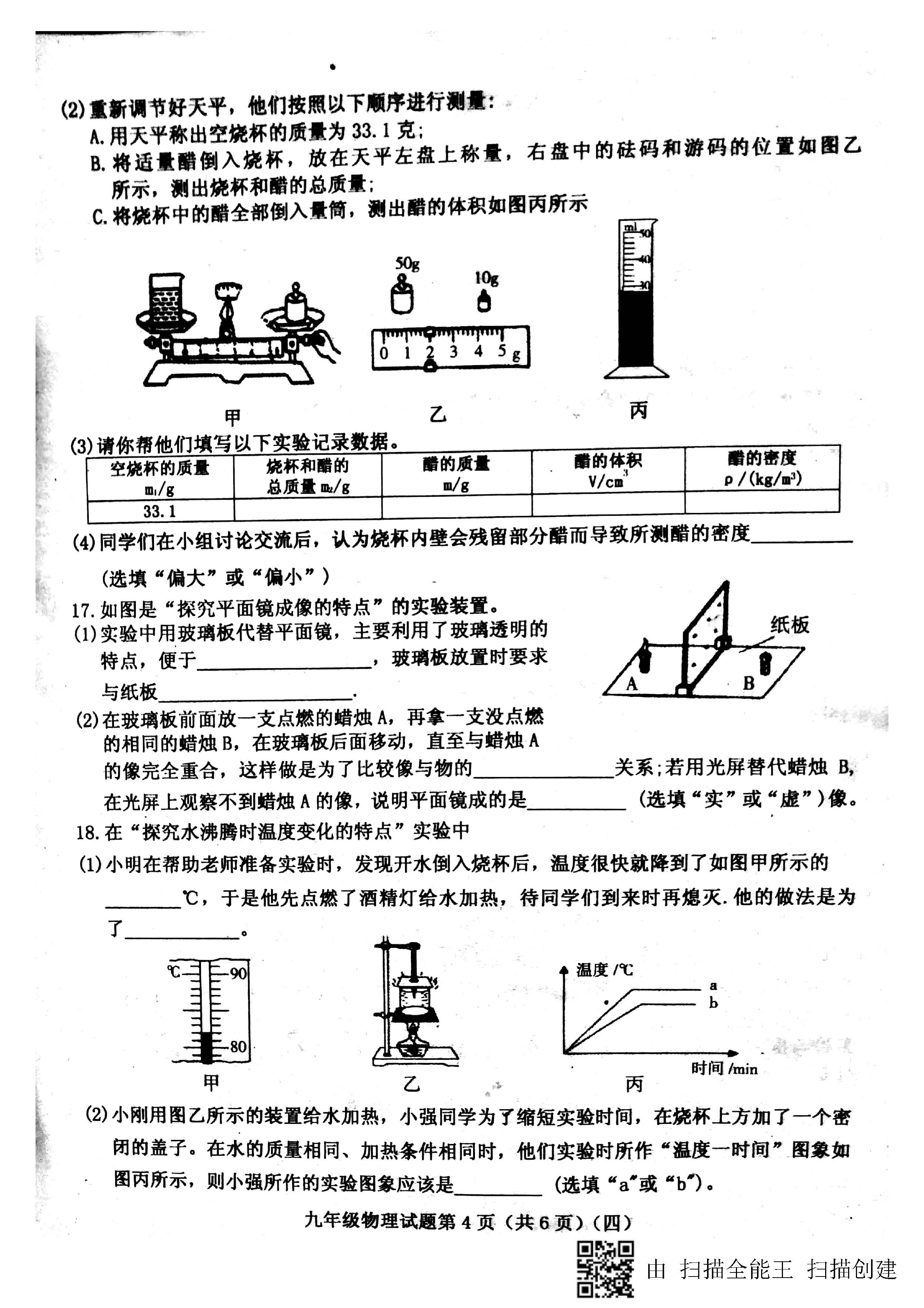 2018山西省实验中学中考物理模拟试题(图片版)(4)