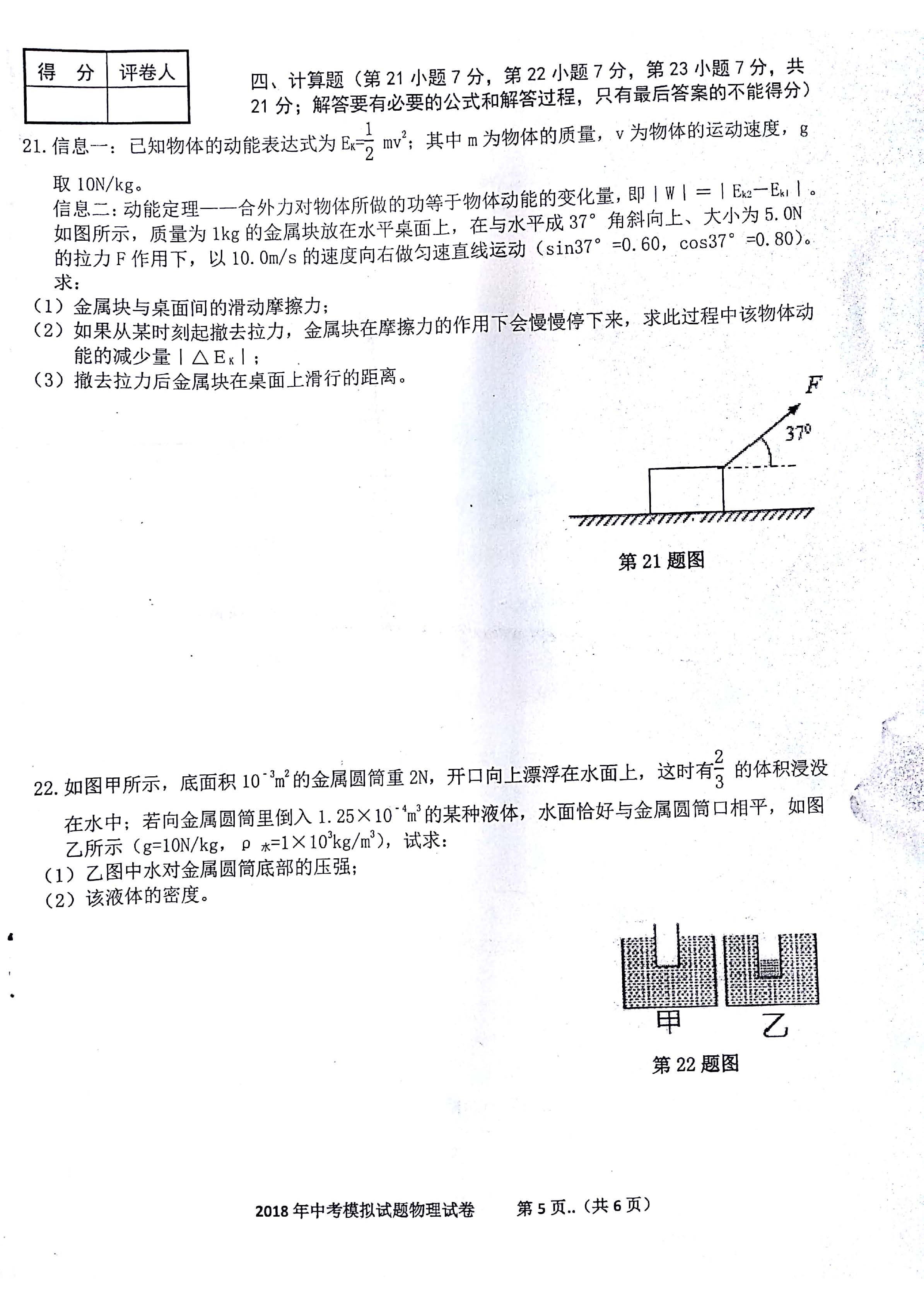 2018安徽巢湖七中九年级下物理模拟试题四(图片版)(5)