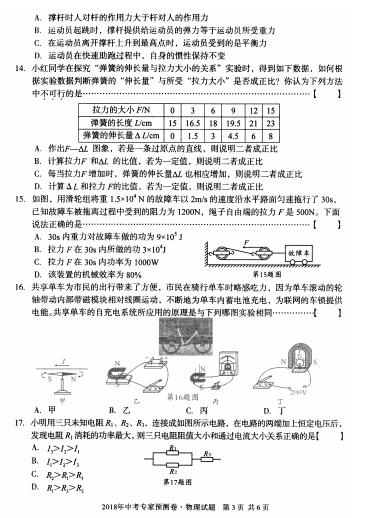 2018安徽初中学业水平测试专家预测卷物理试题(图片版)(3)