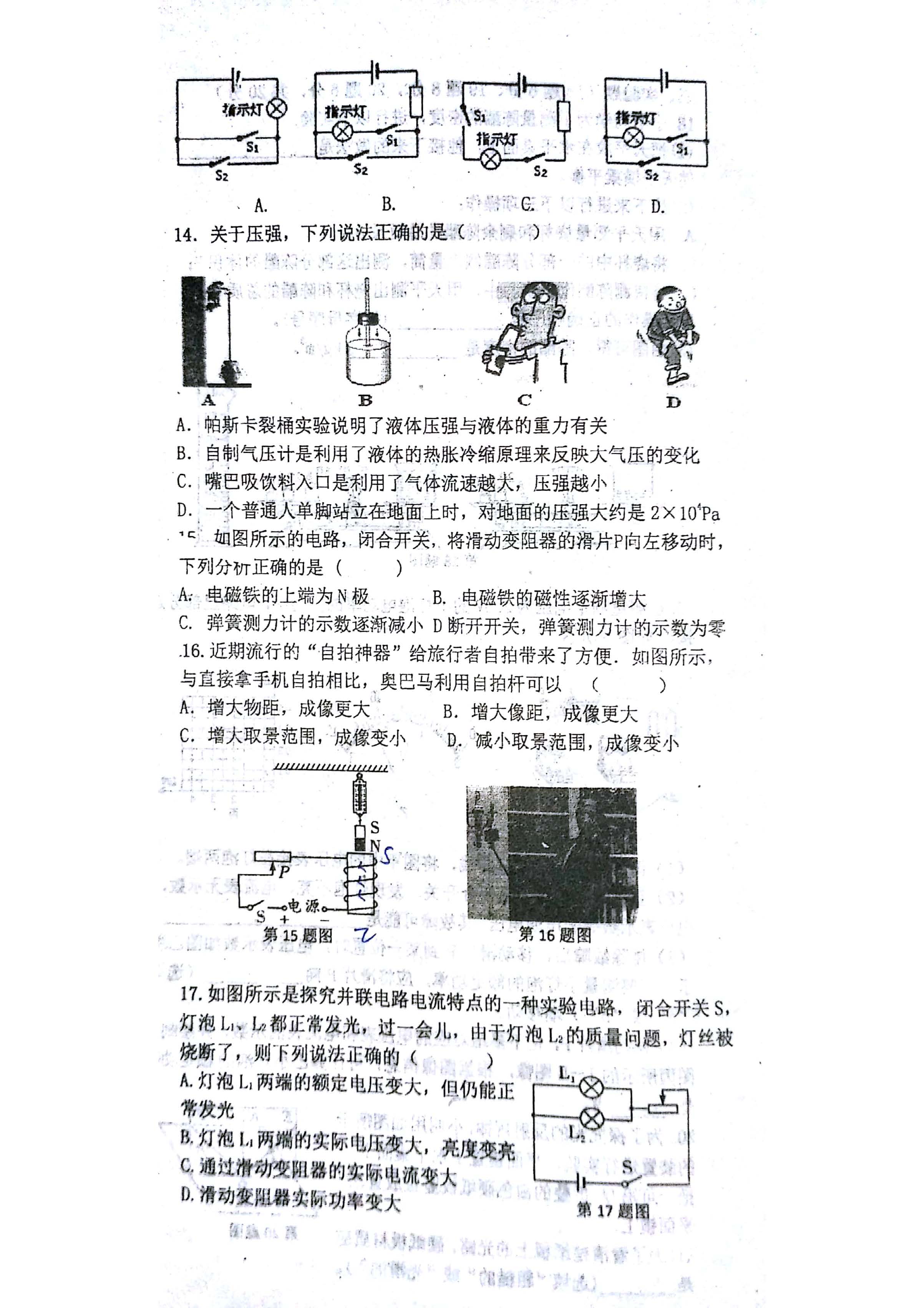 2018安徽天长实验中学中考最后一卷物理试题(图片版)(3)