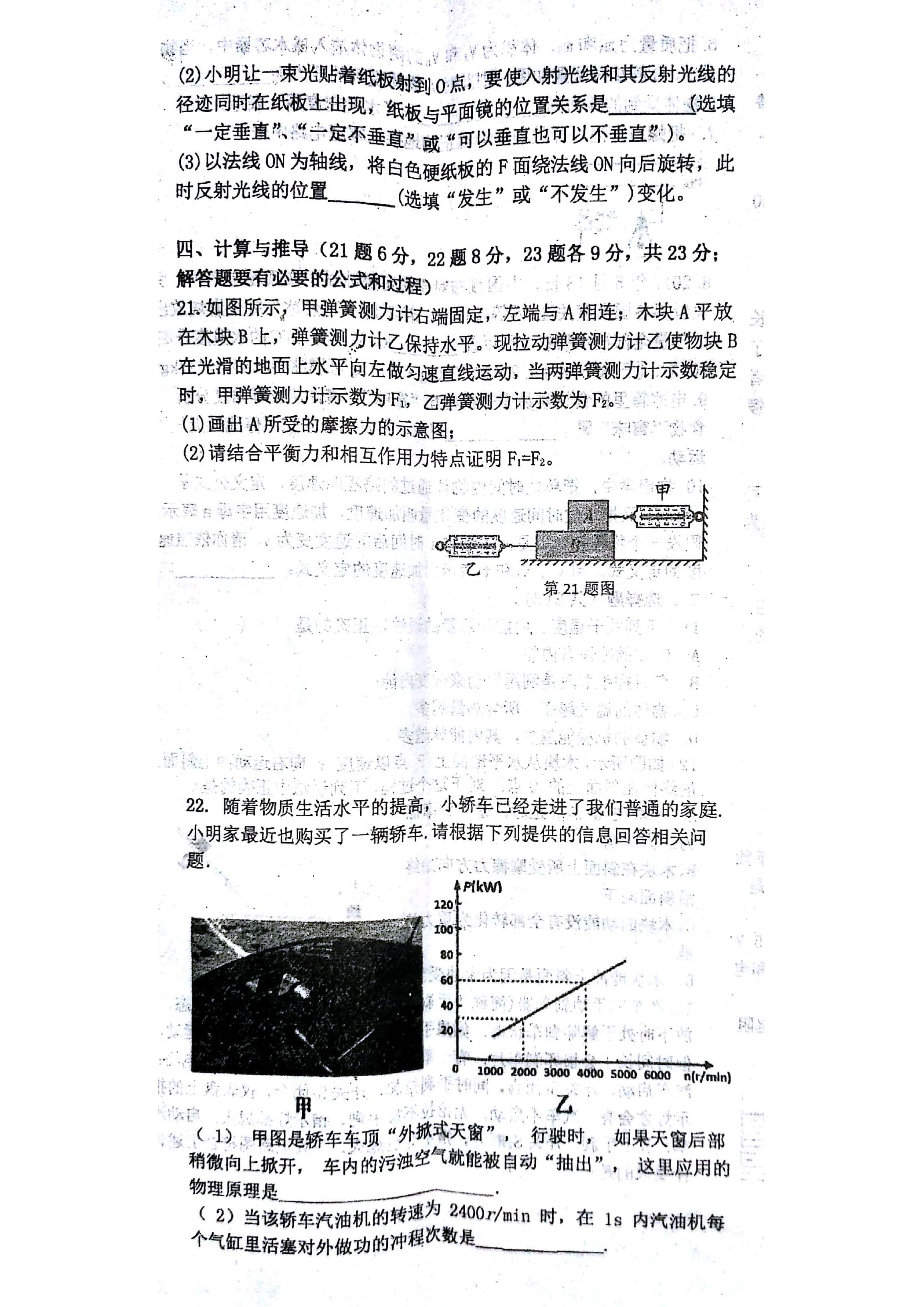2018安徽天长实验中学中考最后一卷物理试题(图片版)(5)