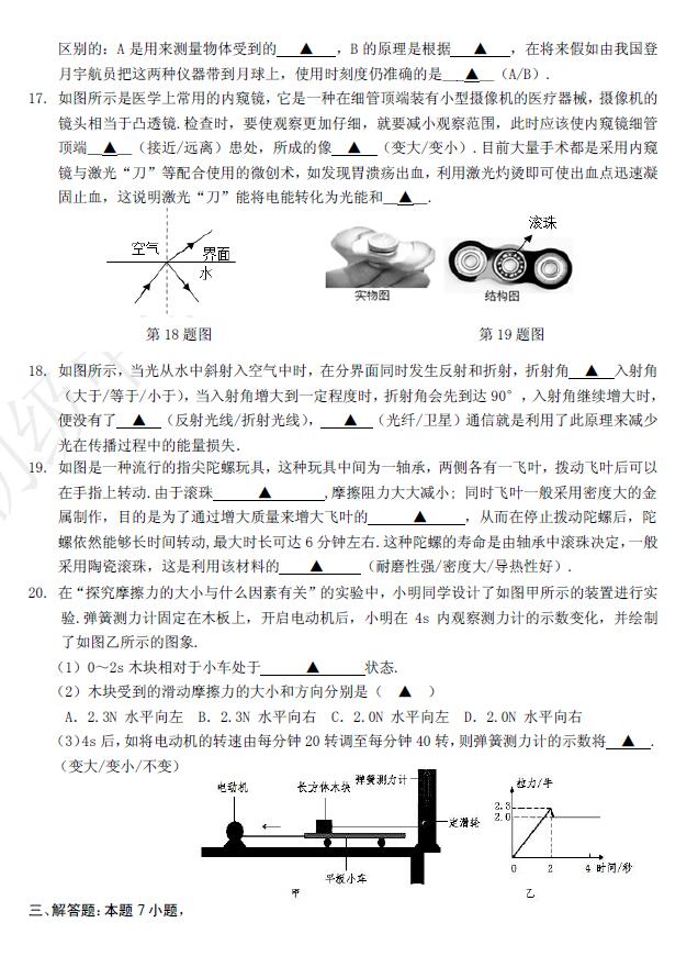 2018江苏盐城中学九年级中考二模物理试题(图片版)(4)