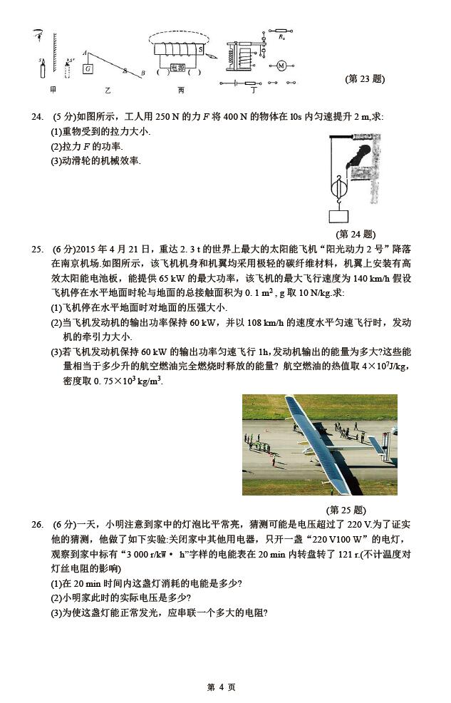 2018江苏南京中考物理押题卷(一)(图片版)(4)