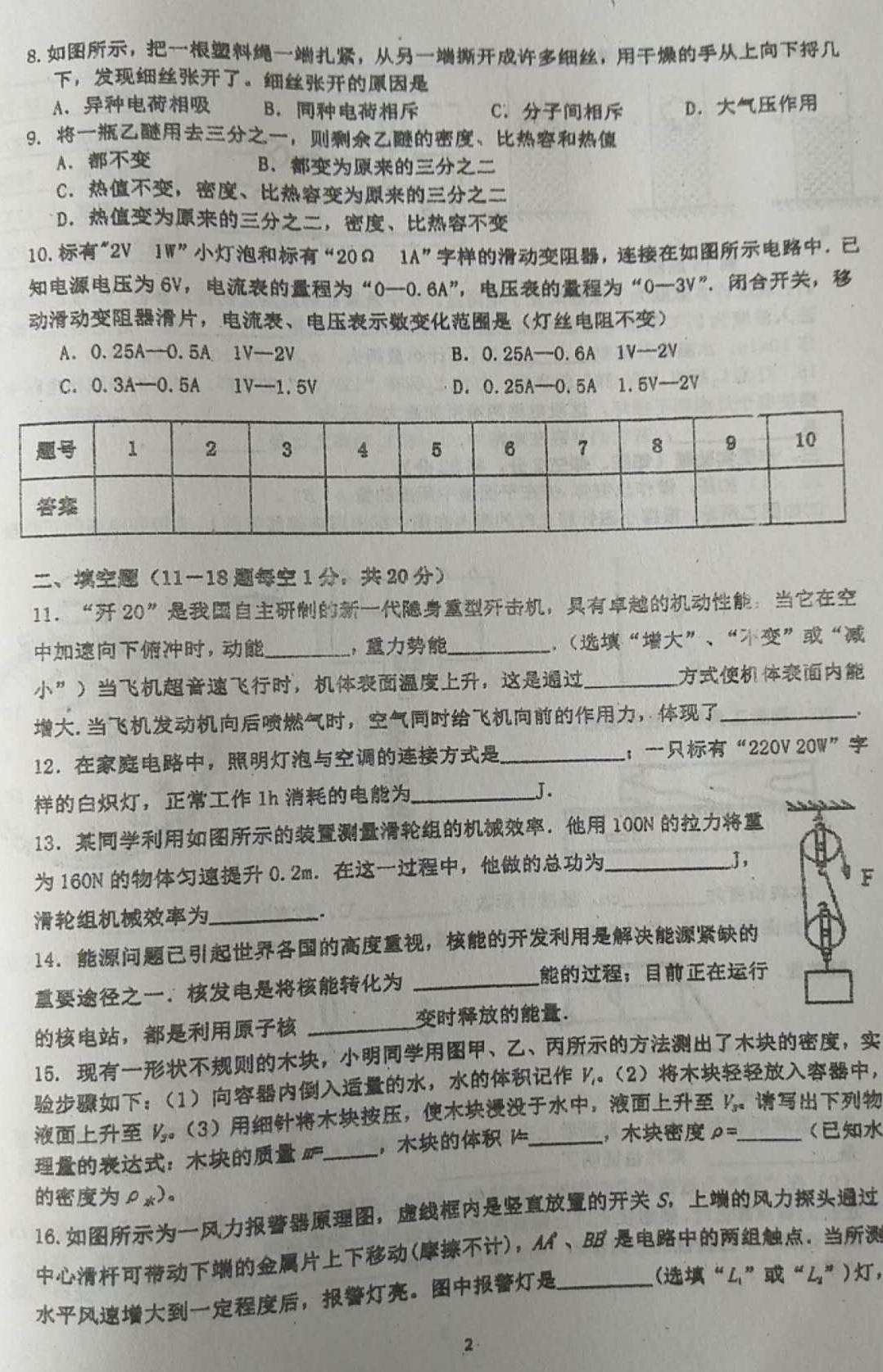 2018江苏连云港新海实验中学九年级三模物理试卷(图片版)(2)