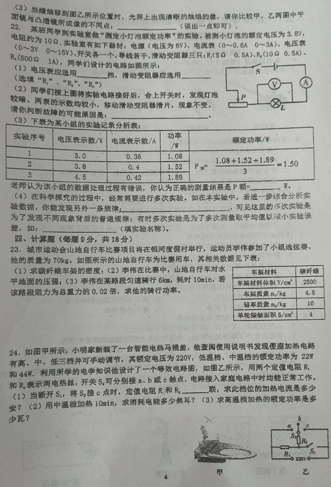 2018江苏连云港新海实验中学九年级三模物理试卷(图片版)(4)