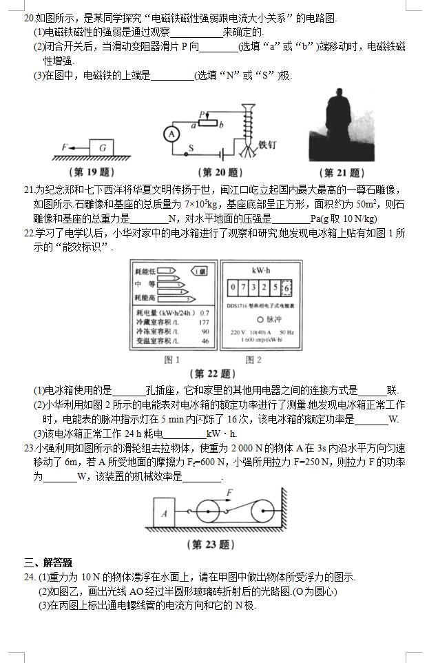 2018江苏苏州初中毕业暨升学考试物理模拟卷(一)(图片版)(4)