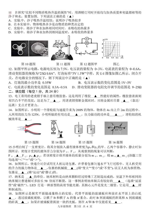 2018江苏盐城大丰中考二模物理试卷(图片版)(3)