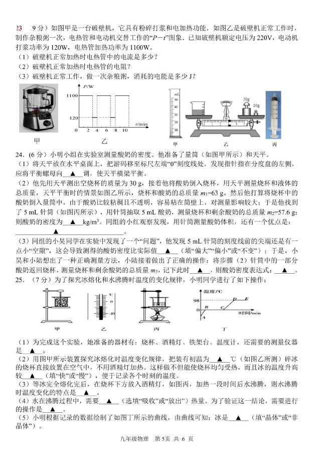 2018江苏盐城大丰中考二模物理试卷(图片版)(5)