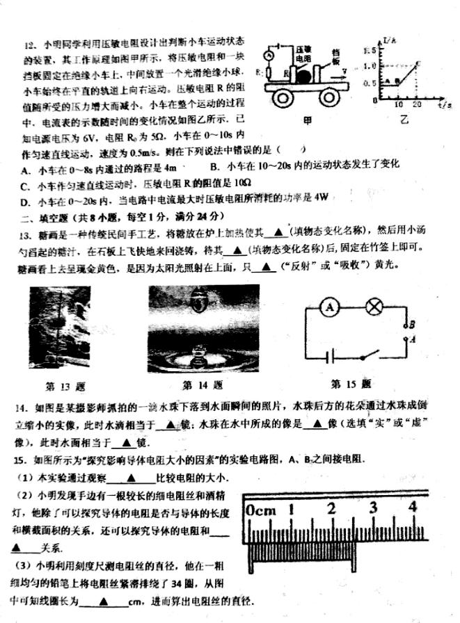 2018江苏东台实验中学中考物理模拟试卷(一)(图片版)(3)