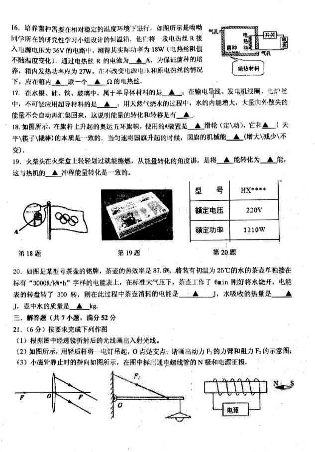 2018江苏东台实验中学中考物理模拟试卷(一)(图片版)(4)