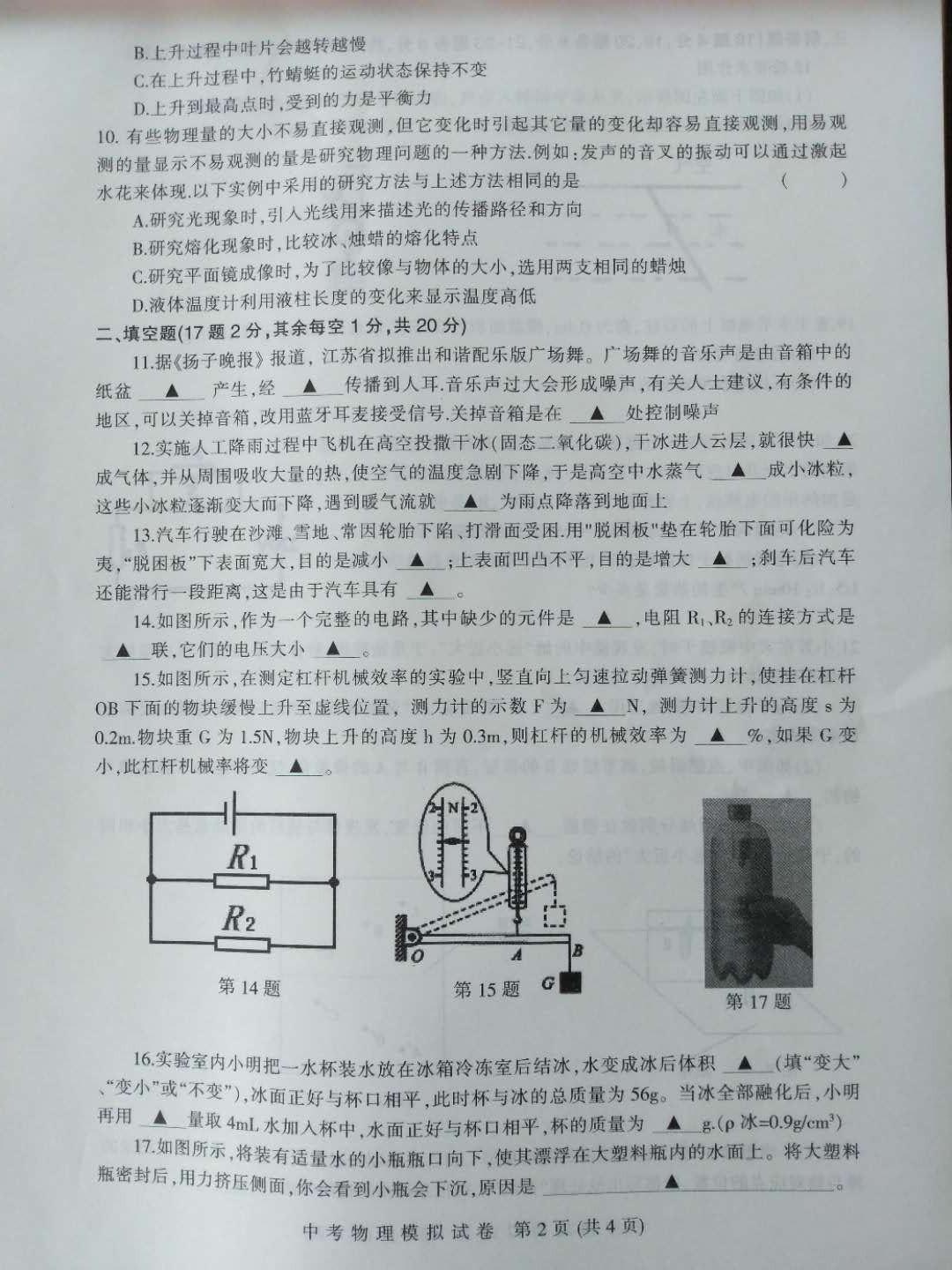 2018江苏徐州中考物理模拟质量测试(一)(图片版)(2)