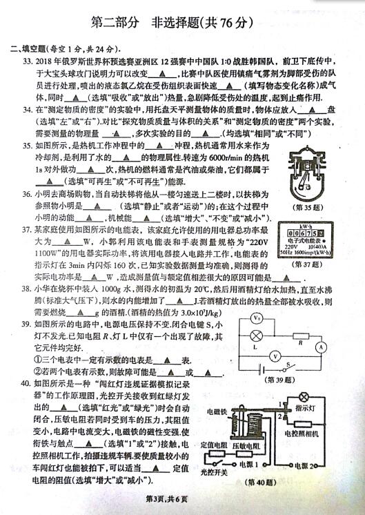 2018江苏靖江中考适应性调研测试物理试题(图片版)(3)