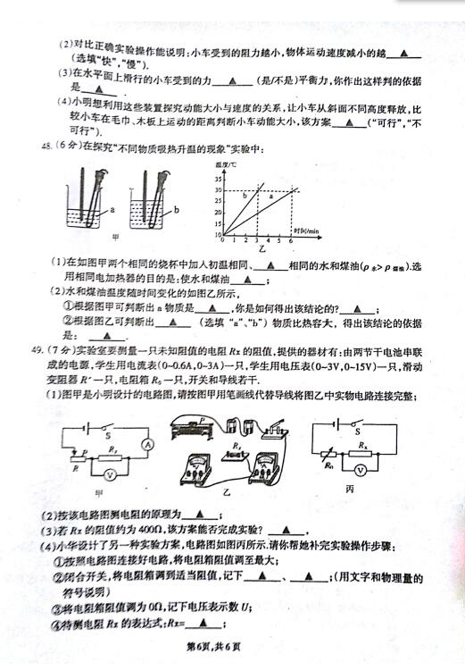 2018江苏靖江中考适应性调研测试物理试题(图片版)(6)