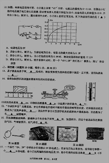 2018江苏仪征中考一模物理试题(图片版)(3)