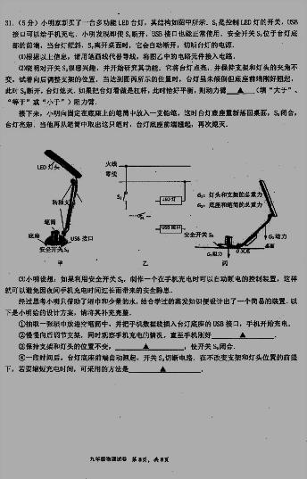 2018江苏仪征中考一模物理试题(图片版)(8)