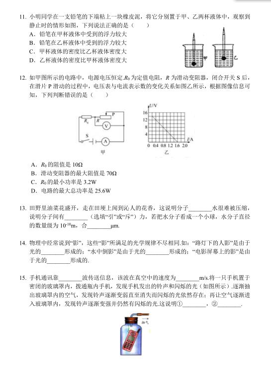 2018江苏南京联合体物理一模试卷(图片版)(3)