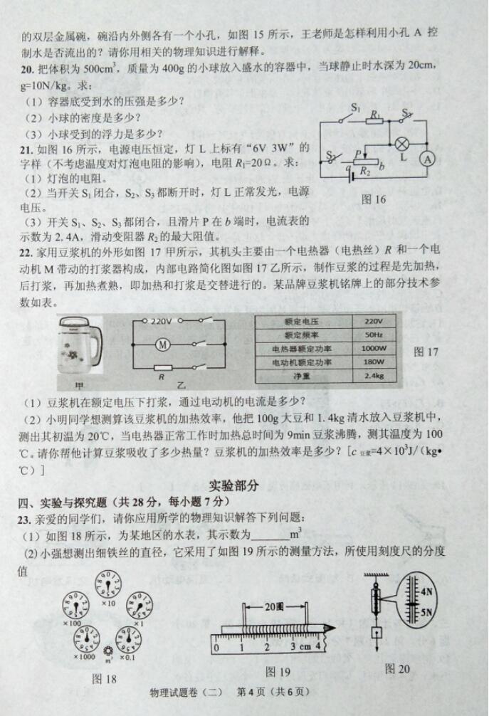 2018江西省中考冲刺卷物理试题二(图片版)(4)