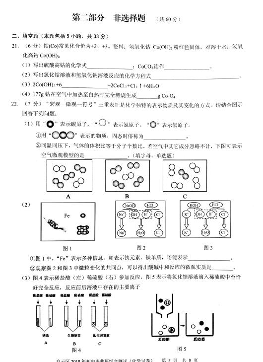 2018广东广州白云九年级中考二模化学试题(图片版)(5)