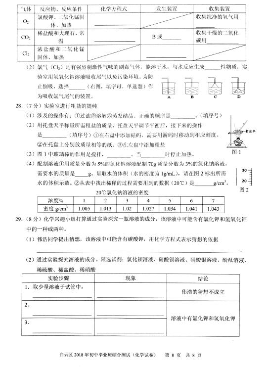 2018广东广州白云九年级中考二模化学试题(图片版)(8)