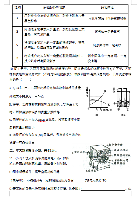 2019安徽合肥第45中学中考一模化学试卷(图片版)(3)