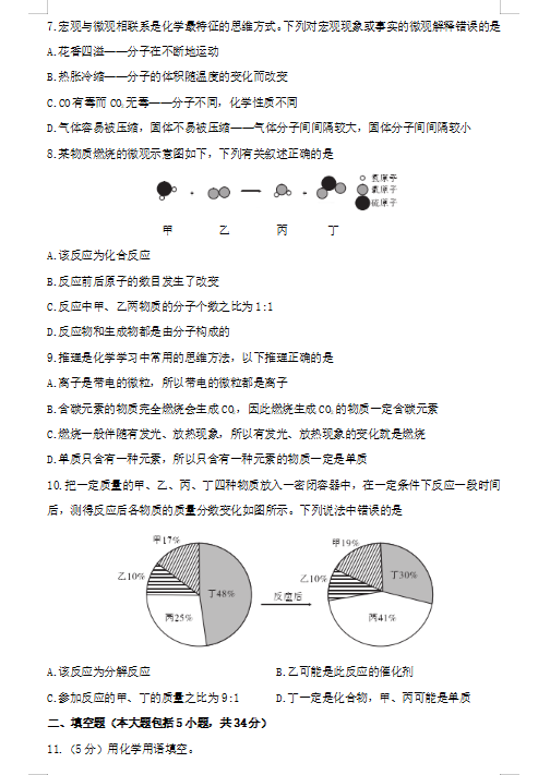 安徽合肥长丰2019九第一次模拟化学试题(图片版)(2)