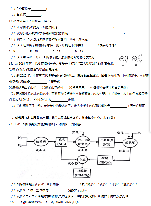 湖南长沙雅礼实验中2019九第一次模拟试卷(图片版)(3)