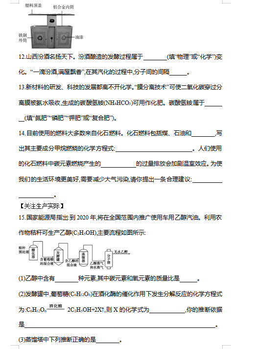 山西省2018-2019年中考化学模拟试卷三(图片版)(4)