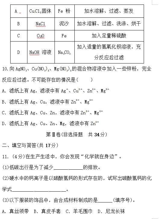 2019山东济宁中考化学模拟滚动检测卷三 (图片版)(4)