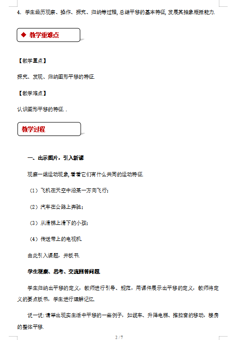 2019人教版七数学下第五章第4节平移教案(图片版)(2)