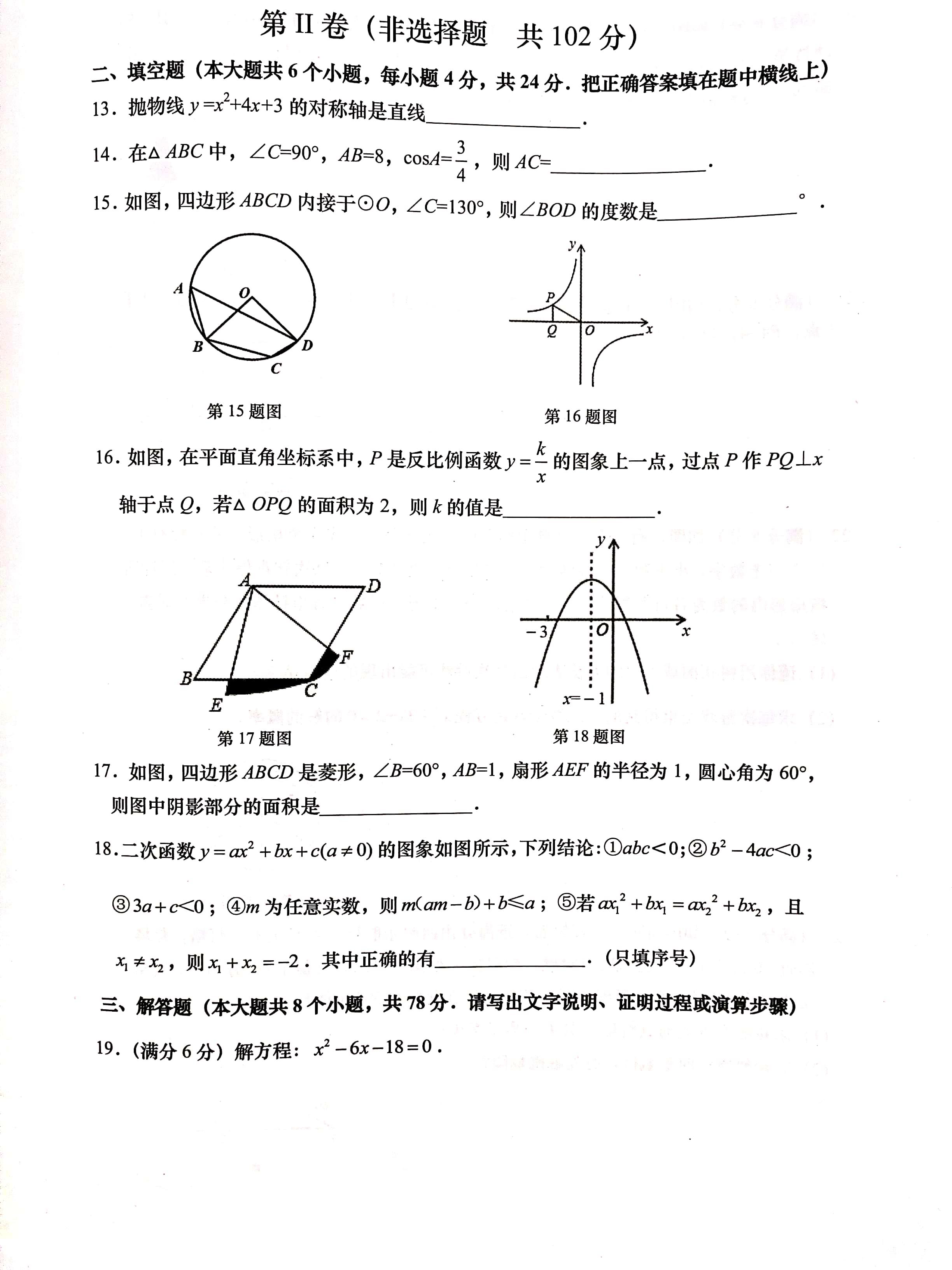 2018-2019山东济南历下初三上数学期末试卷(图片版)(3)