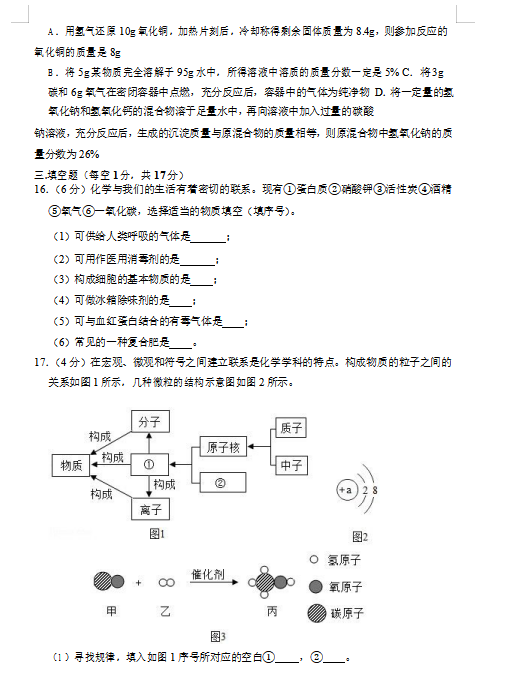 2019天津市东丽区中考化学一模试卷(图片版)(4)