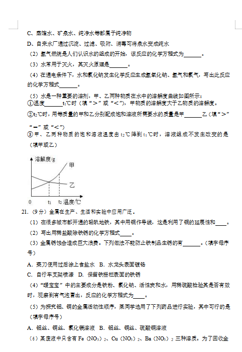 2019天津市东丽区中考化学一模试卷(图片版)(6)