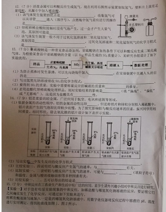 2019安徽合肥50中中考一模化学试卷(图片版)(3)