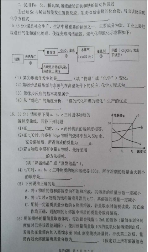 山东东营广饶2019九一模化学试题(图片版)(5)